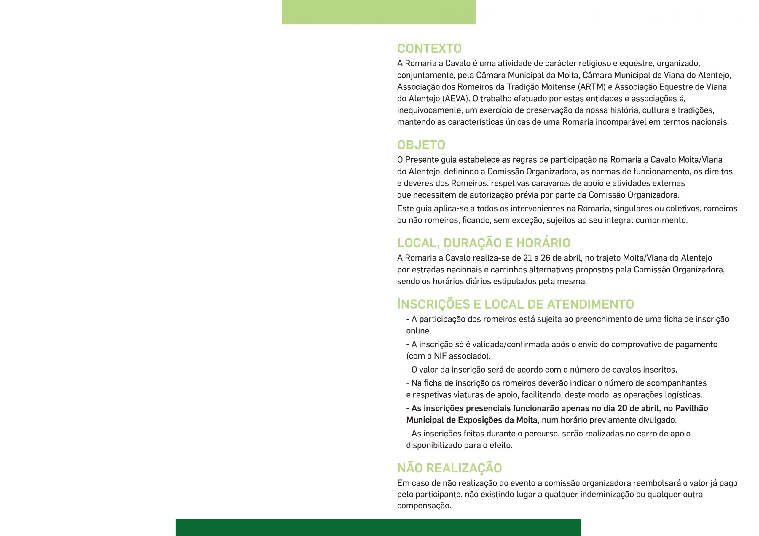 - A partir de 20 de abril (inclusive): O valor da inscrição passa a ser de 90,00€ por cavalo.