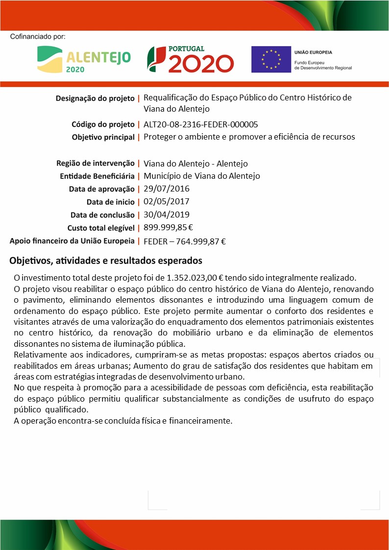 Início > INVESTIDOR > GADE > Projetos Financiados > Projetos Concluídos > Requalificação do Espaço Público do Centro Histórico de Viana do Alentejo